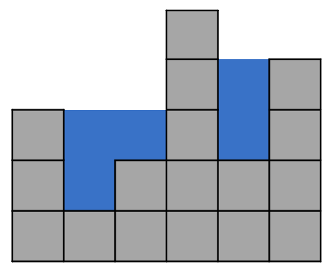 - 说明:如上图,数组 [3, 1, 2, 5, 2, 4] 表示柱子高度,这种情况下可以接5个单位的雨水,图中蓝色部分。
