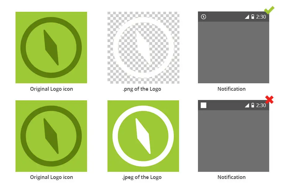 PNG文件格式,否则将显露白色。 - 相关链接:https://clevertap.com/blog/fixing-notification-icon-for-android-lollipop-and-above/